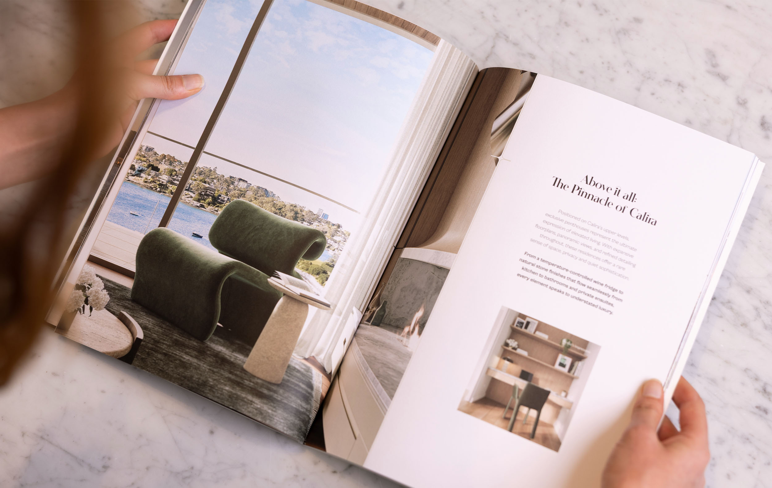 We led research, workshops and collaborative discovery calls with the architect, Lewis Lau, the developer, Charbel Obeid, and the sales agent, Clayton Ross, and conducted our own in-depth site visit to the development and the surrounding urban neighbourhood. Drawing on first-hand insight and desktop research alike, we uncovered what made Calira truly luxurious and one-of-a-kind: the shimmer of the river itself.