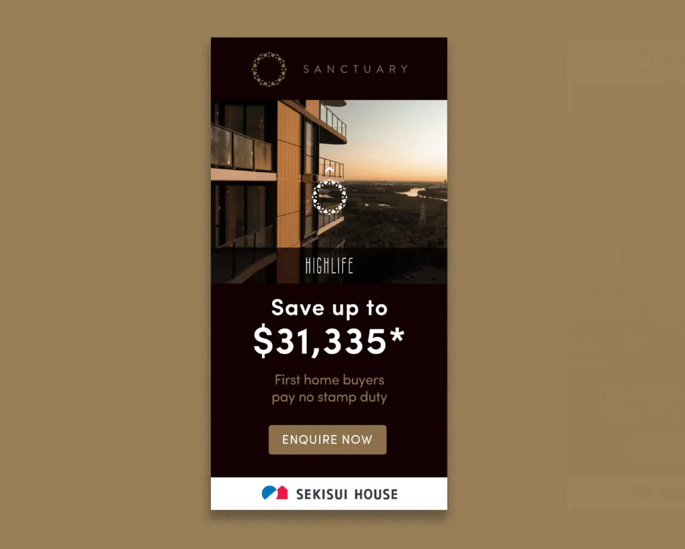 Adapting to the Covid-19 rules and gathering limits, TOAST and Sekisui House pivoted and used the campaign as an opportunity to promote exclusive private tours of the apartments, allowing their off-the-plan purchases to continue to thrive. This safe, tailored approach to sales tied back to the buyer insights our teams established and permitted the desirable location of Sanctuary to continue to be experienced for all interested parties.